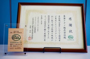 このたび弊社は、エコアクション21において 10周年継続事業者として認定され、記念品をいただきました!